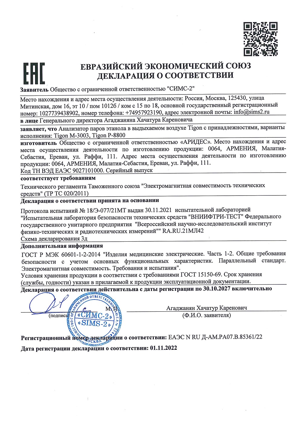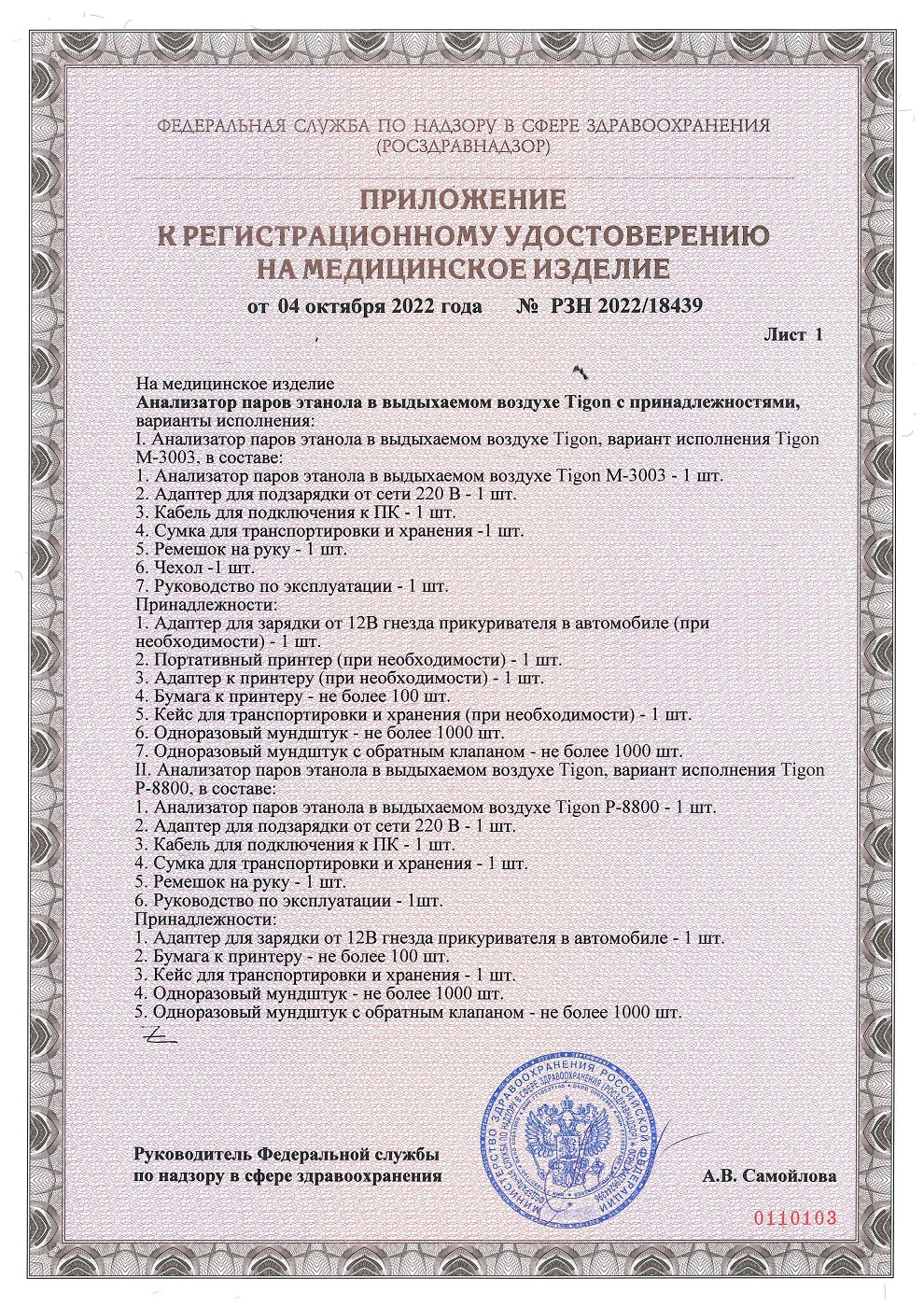 прибор допущен Минздравом РФ для проведения официальных проверок;