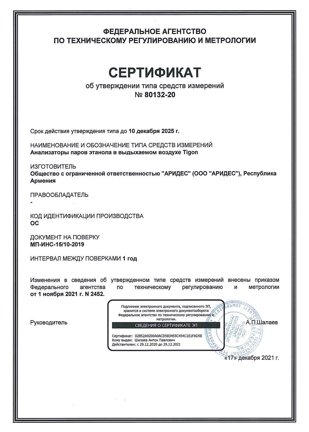 Док: Свидетельство о метрологической поверке