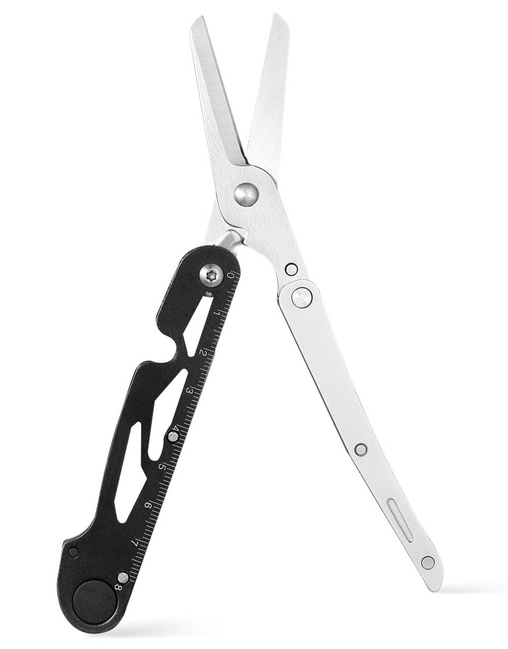 Биты представляют собой набор различных отверток. Это крестовые и плоские отвертки, а также шестигранники. Это стандартные биты с округлым основанием, при желании вы можете использовать другие биты, которые можно докупить в хозяйственном магазине. Для того чтобы воспользоваться инструментом мультитула, сначала необходимо его раскрыть, вывернув рукоятки в обратную сторону. В результате вы получите плоскогубцы с рукоятками. Нажмите на верхнюю часть мультитула, чтобы разблокировать замок и потяните за край нужного вам инструмента. Ножницы с сантиметровой линейкой являются съемными, их можно использовать, как отдельный инструмент.