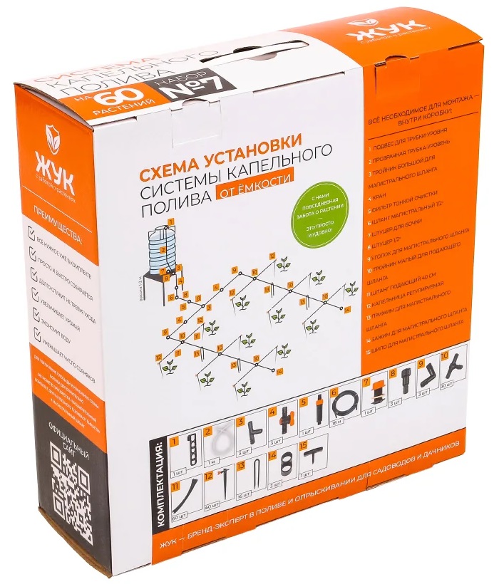 Особенности системы капельного полива "Жук" от емкости с регулируемыми капельницами (60 растений):