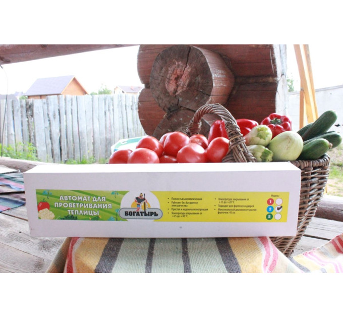 4 термопривода для автоматического проветривания теплиц "Богатырь-2"из данного комплекта отличаются повышенной надежностью и ветроустойчивостью благодаря подвижным механизмам с двумя пружинами. Каждый автомат устанавливается на тепличную форточку и выдерживает нагрузку до 7 кг. Можно вручную настроить температуру срабатывания (общий рабочий диапазон: от +15 до +30°C). Данный комплект позволяет купить 4 механизма для проветривания теплицы как раз к началу дачного сезона по максимально выгодной цене!