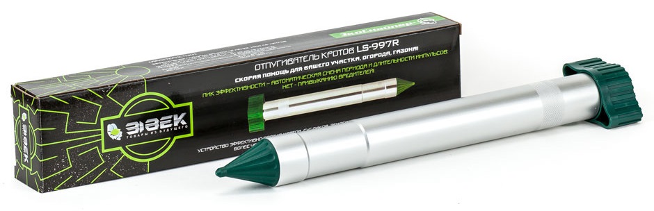 Звуковой электронный отпугиватель кротов на батарейках "ЭкоСнайпер LS-997R", как и все подобные устройства такого типа, использует главную слабость подземных вредителей — их обостренный слух. Он генерирует и распространяет в почве звуковые волны, которые ни кроты, ни любые их сородичи не могут долго выносить! Под действием таких волн подземные обитатели теряют ориентацию на месте и испытывают чувство постоянной опасности. Как результат, они достаточно быстро покидают территорию, убираясь как можно дальше от источника пугающих звуков.