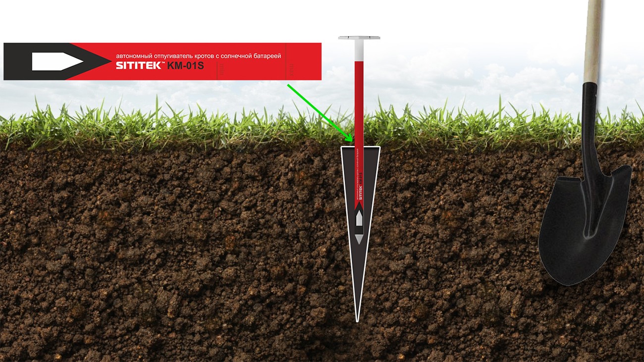 Компания СИТИТЕК выпустила модифицированную версию отпугивателя кротов, обладающую тройным воздействием на вредителей. Прибор получил название "SITITEK КМ-01S", он генерирует мощный вибрационный сигнал под землей, а также создает слабое магнитное поле, которое сбивает кротов с верного маршрута в туннелях. Вибрационные волны также имитируют наличие твердых объектов, что мешает кротам рыть новые ходы. Дополнительный эффект создает особый репеллент, выделяющий специфический запах, влияющий на нервную систему кротов.