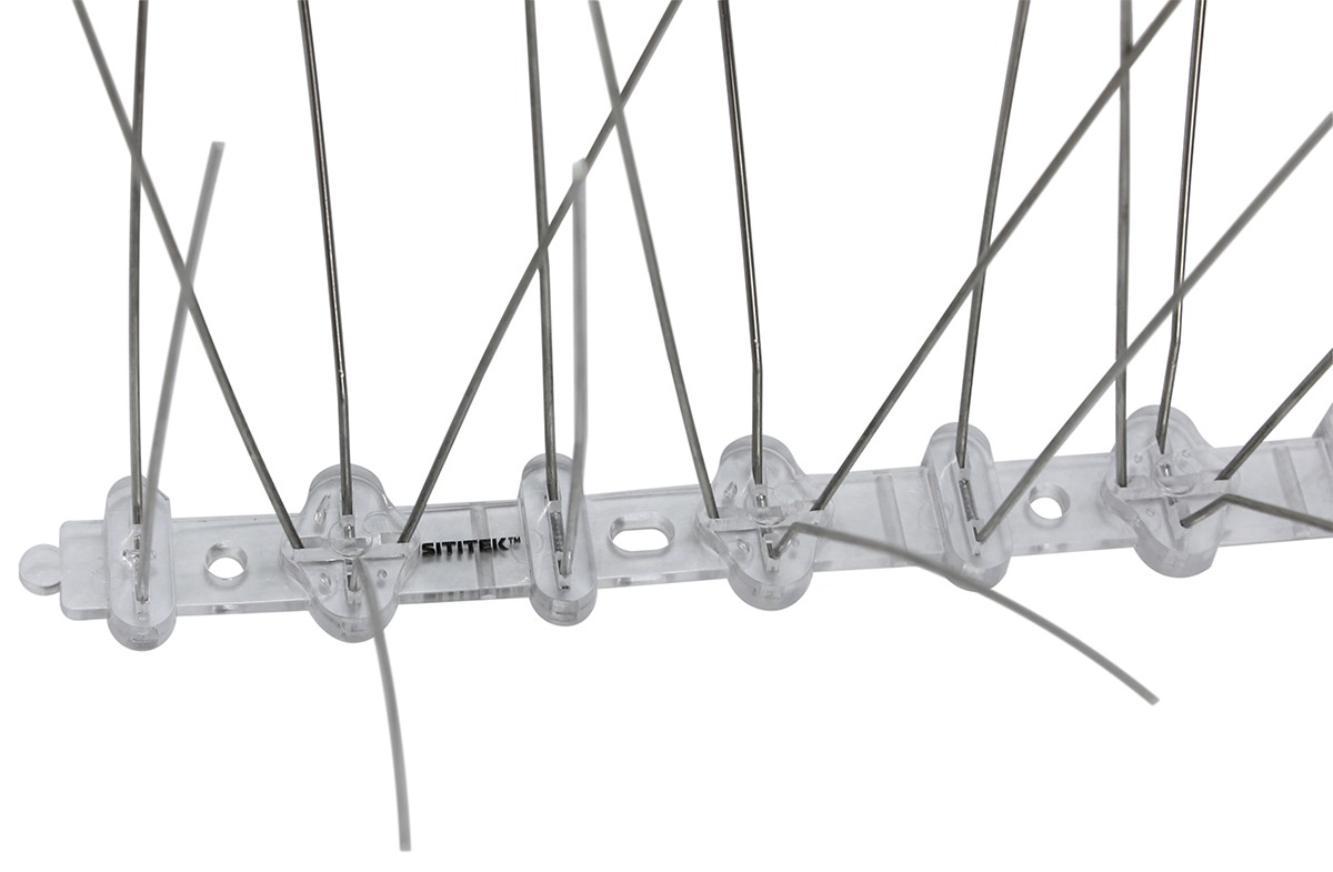 Более прочные по сравнению с аналогами. Очень часто встречаются бюджетные модели противоприсадных шипов от птиц, изготовленные из пластика. Главный недостаток таких шипов — их недолговечность. Пластиковые шипы трескаются под жаркими лучами солнца, а крупные птицы могут просто сломать их своим весом. Модель шипов "SITITEK Барьер-Премиум 5С" оснащена прочными металлическими прутками, а основание секций выдерживает любую температуру.