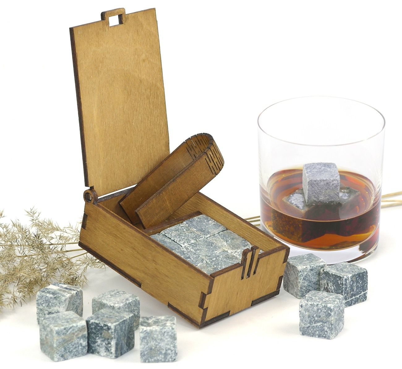 в наборе 9 камней в подарочной деревянной шкатулке и щипцы.