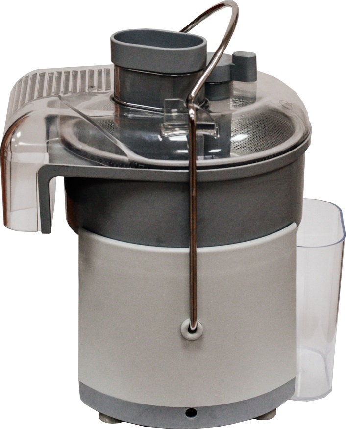 Емкость для сбора сока в комплекте — сок из плодов отделяется от мякоти за счет центробежной силы, которая возникает при вращении центрифуги устройства. Затем он поступает в сливное отверстие, которое имеет специальную конструкцию загнутой формы. В комплект поставки соковыжималки входит удобная прозрачная емкость для сбора сока. Она помещается точно под широкий слив, что позволяет избежать разбрызгивания сока в процессе отжима.