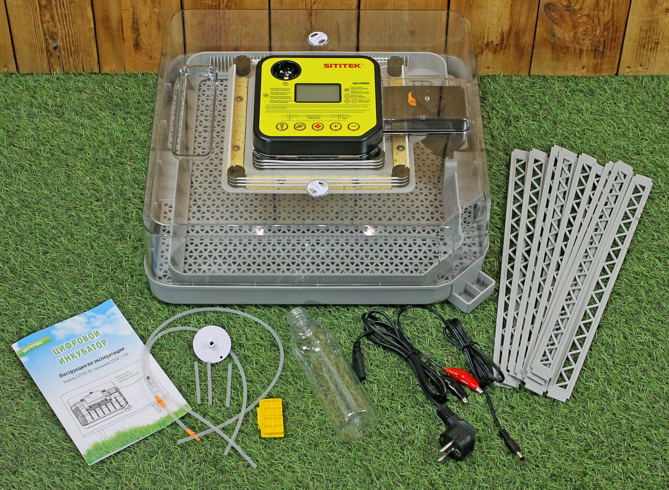 Автоматический инкубатор "SITITEK 48" рассчитан на одновременную загрузку 48 куриных яиц. Также в него можно загрузить до 12 крупных гусиных яиц или 24 утиных яйца. Кроме того, регулируемые секции лотка инкубатора позволяют укладывать в него и совсем маленькие перепелиные яйца (до 96 шт.). Аппарат использует самую современную электронику, что делает процесс инкубации полностью автоматическим. Вам остается лишь иногда доливать воду в систему увлажнения и визуально контролировать процесс.