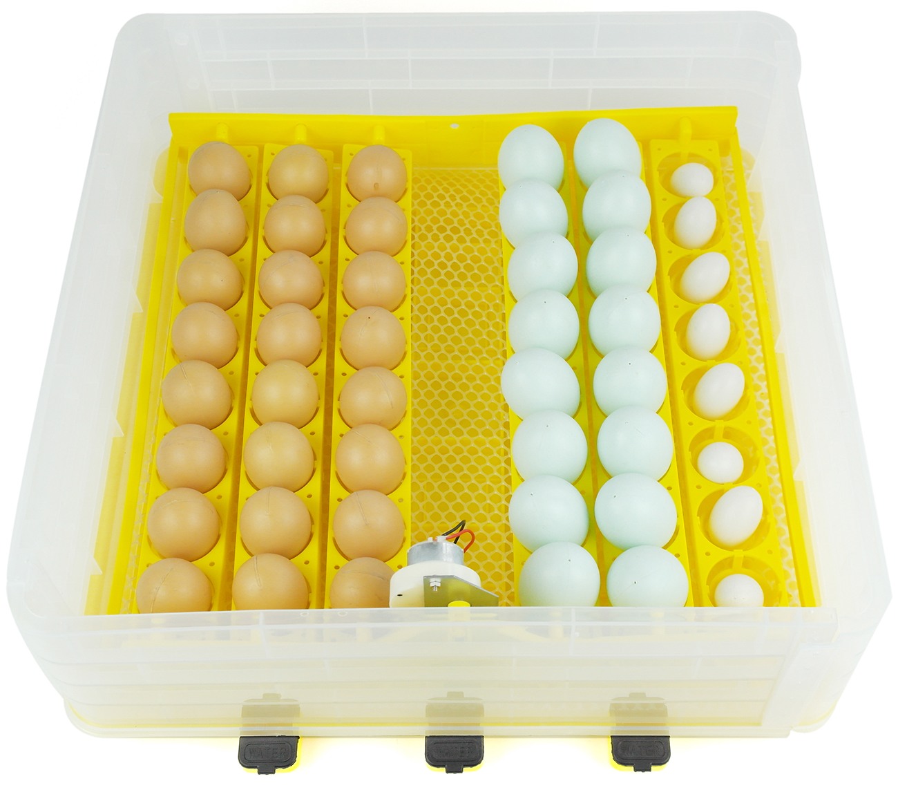 Очень большая вместимость камеры . Установка способна одновременно инкубировать 96 куриных яиц , что позволяет заниматься разведением птицы в крупных масштабах. Прибор отлично зарекомендовал себя в фермерских хозяйствах и на мини-птицефабриках.