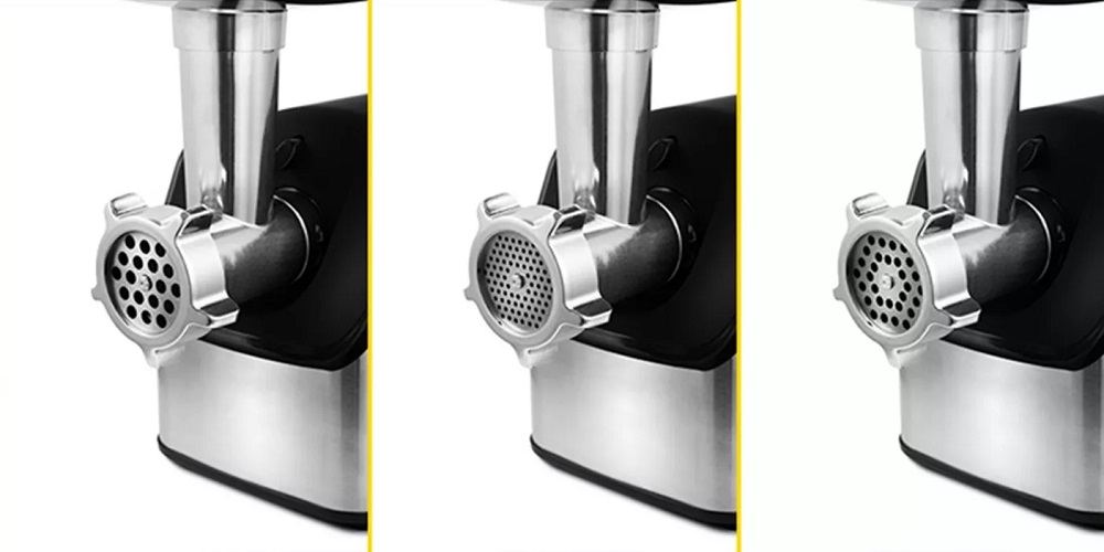 в комплекте 3 сменные решетки, позволяющие делать фарш разной консистенции;