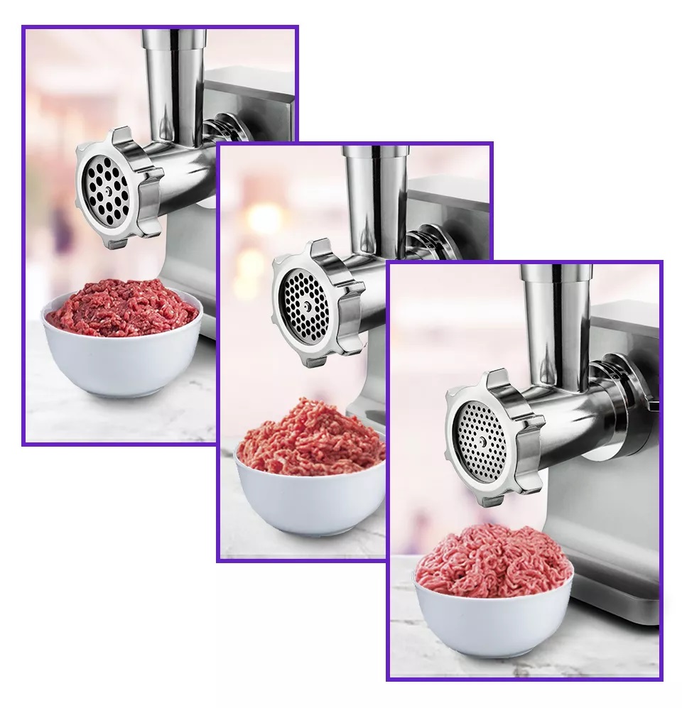 3 сменные решетки позволяют делать фарш разной консистенции;