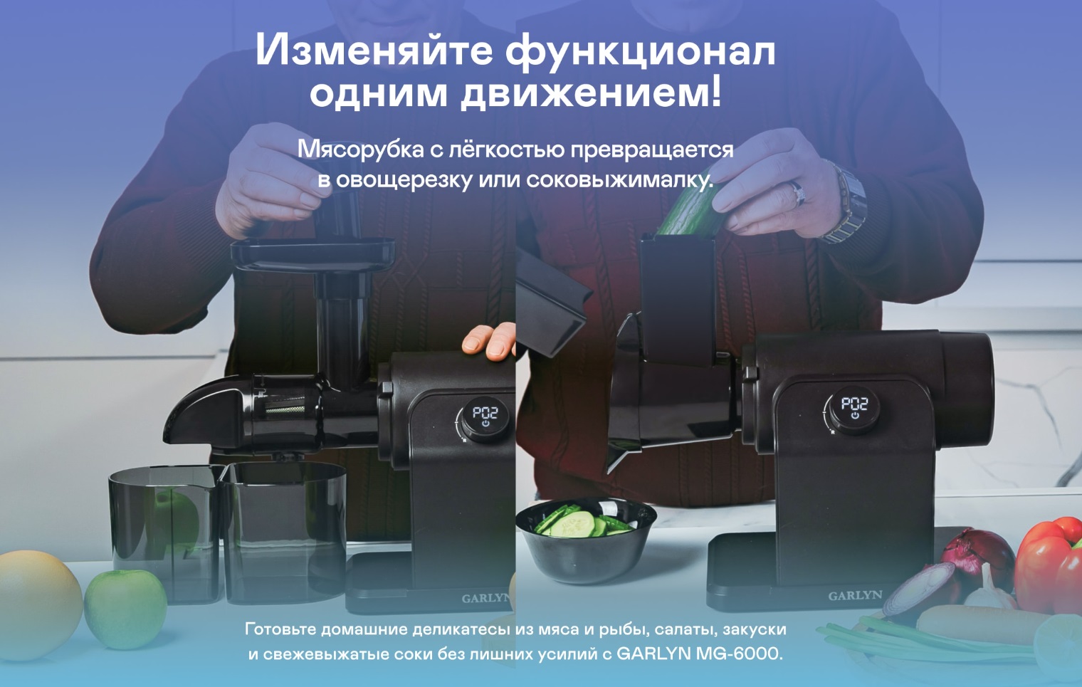 3 в 1: мясорубка + соковыжималка + овощерезка