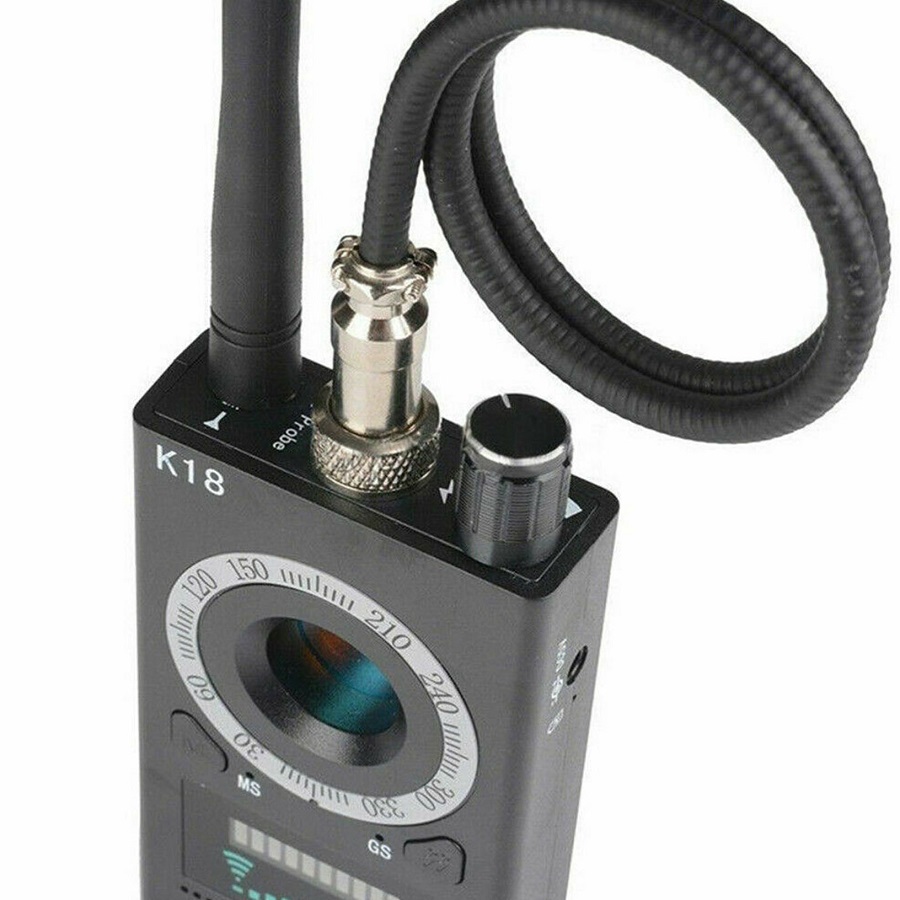 Поиск скрытых видеокамер — найти беспроводную камеру можно по блику от ее объектива. Детектор жучков оснащен несколькими светодиодами с изменяющимся уровнем мерцания, а также оптическим сканером. Этот набор позволяет создать мерцающий свет, который отразится от объектива камеры и будет виден через линзу сканера. Светодиоды расположены на задней части корпуса прибора. Внимательно смотрите через линзу, т.к. блик можно увидеть только глазами, осмотр нужно производить не спеша.