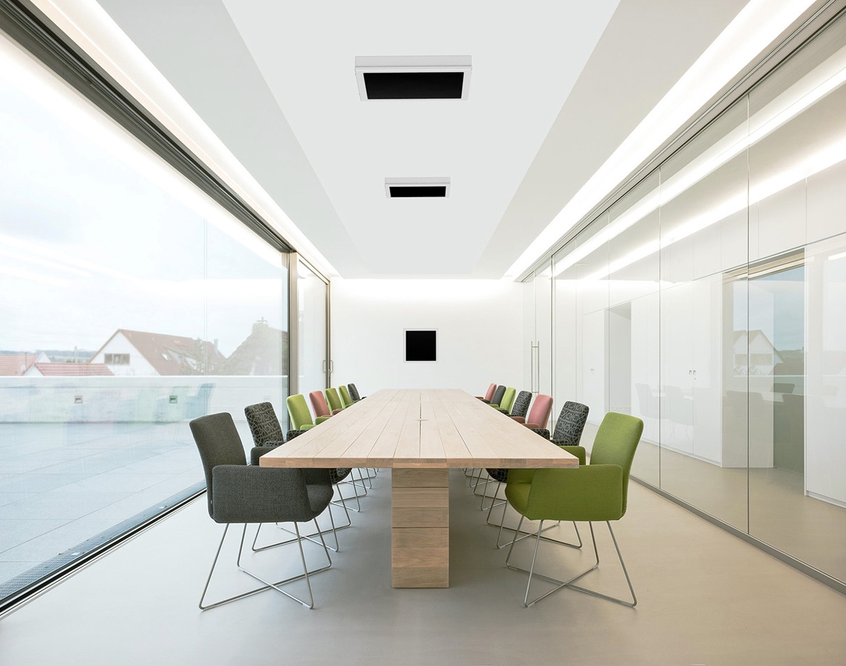 Совет от специалистов: при выборе помещения под переговорную комнату лучше подобрать небольшое помещение квадратной формы (длиной и шириной до 10 м). Высота потолков должна быть не более 3,5 м. Это повышает эффективность работы подавителя микрофонов, т.к. УЗ волны проходят через все помещение и отражаются от стен, что делает сигнал очень плотным. Если переговорная комната имеет большую площадь, то лучше разместить в ней 2 или более подавителей микрофонов, расположив их с разных сторон на стенах и потолке.