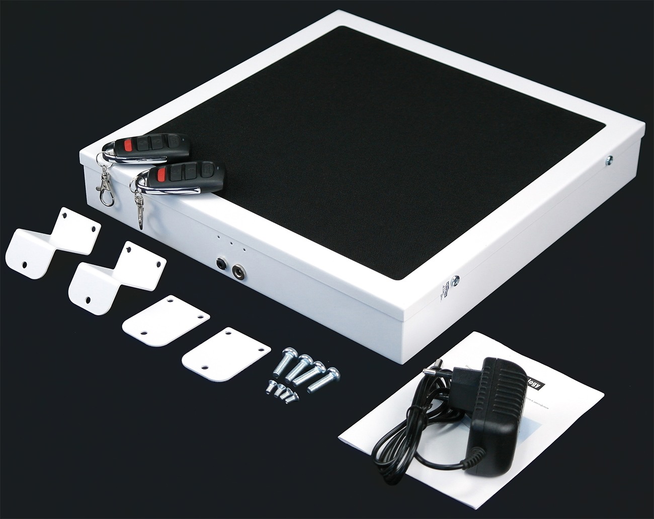 Разместите прибор рядом с тем местом, где будут находиться ваши собеседники. Разверните его лицевой стороной туда, где предположительно могут быть прослушивающие устройства. Подавитель можно поставить на любую горизонтальную поверхность или закрепить на стене или потолке. К прибору прилагается комплект для крепежа, также можно докупить кронштейн VESA.